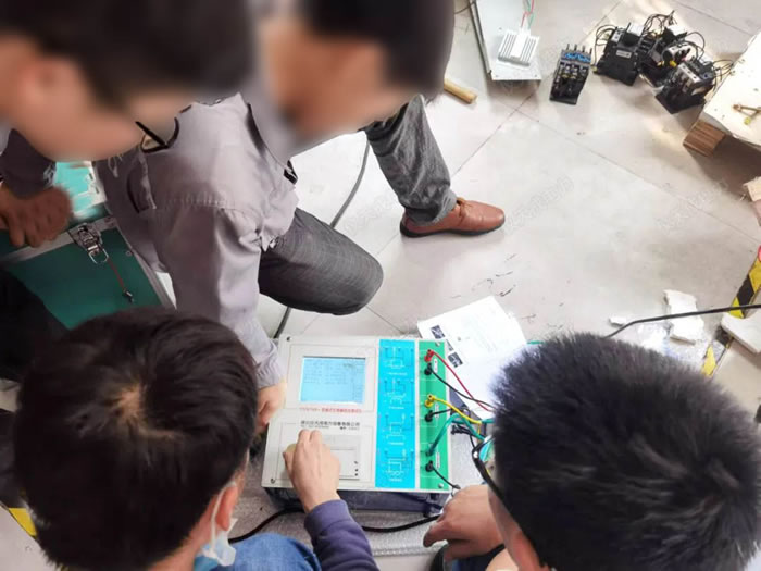 安檢電氣技術(shù)人員為客戶進(jìn)行電力測試設(shè)備的技術(shù)培訓(xùn),首先為客戶講解測試設(shè)備的特點,功能,使用方法等理論知識,之后,技術(shù)人員為客戶演示試驗的操作步驟,其中丁工為客戶詳細(xì)介紹了試驗設(shè)備的接線方法,參數(shù)的設(shè)置,和試驗操作方法等技術(shù)性問題。在整個試驗技術(shù)培訓(xùn)過程中,客戶人員在一邊接受技術(shù)培訓(xùn),一邊也提出自己的各種技術(shù)性的疑問,安檢電氣技術(shù)人員與客戶技術(shù)人員進(jìn)行了面對面的溝通與解答,以實際操作演示,為客戶解決操作試驗設(shè)備的問題。