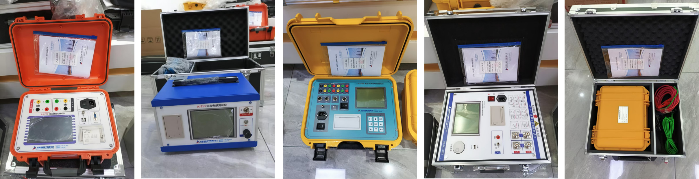 其中設(shè)備包含AJ2210 變壓器變比測試儀, AJ513 電容電感測試儀, AJ308高壓開關(guān)特性測試儀, AJYP-6 異頻介質(zhì)損耗測試儀, AJ5000 絕緣電阻測試儀。