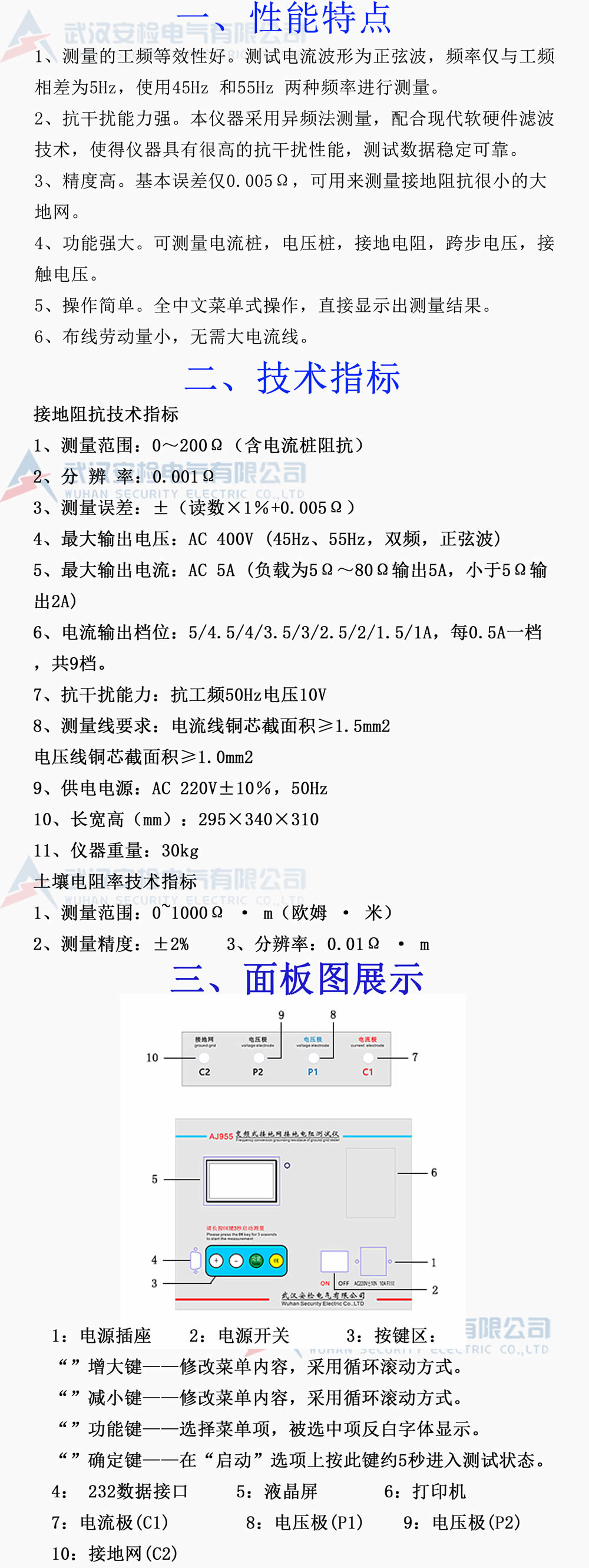AJ955 變頻式接地電阻測試儀 大地網(wǎng)電阻測試儀器