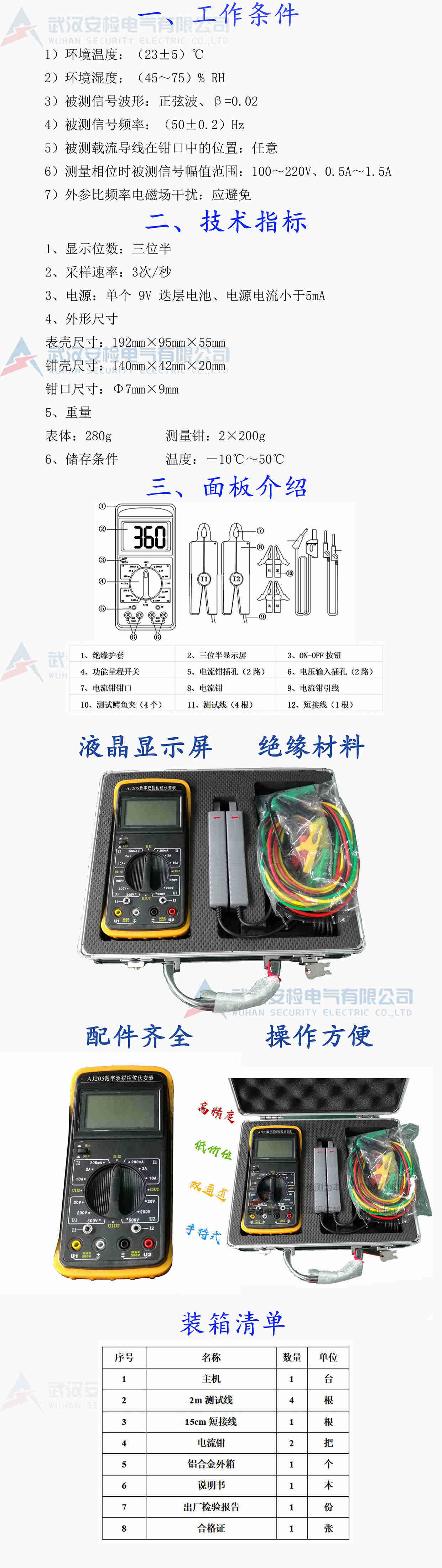 AJ205 數(shù)字式雙鉗相位伏安表 全自動相位表